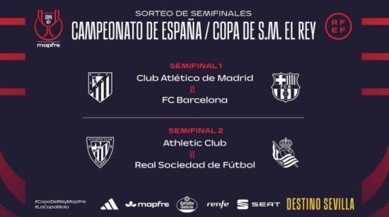 El Atlético de Madrid se enfrentará al FC Barcelona y el Athletic Club a la Real Sociedad en las semifinales de la Copa del Rey Mapfre 2025-2026, según ha deparado el sorteo celebrado este viernes en la Ciudad del Fútbol de Las Rozas (Madrid).