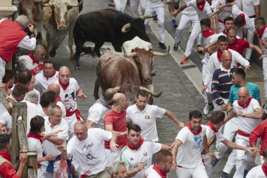 Seis corredores han tenido que ser finalmente trasladados con heridas y contusiones tras el primer encierro de los Sanfermines de 2023, protagonizado por toros de La Palmosilla, que no han dejado heridos por asta.