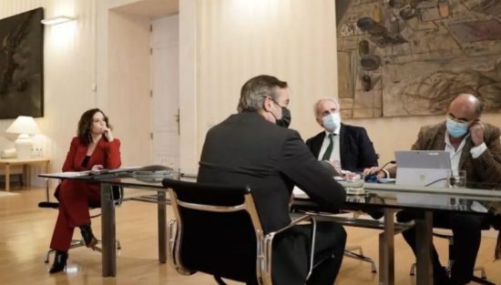 La presidenta de la comunidad de Madrid, Isabel Díaz Ayuso, ha discrepado de la mayor parte de sus compañeros en la obligatoriedad de la mascarilla en exteriores si hay distancia suficiente y tampoco ve útiles los rastreadores militares «a estas alturas», rechazando también «cierres sin datos».