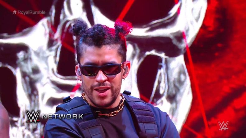 Todo comenzó cuando dos de los luchadores, The Miz y John Morrison, que iban a participar en el combate Royal Rumble donde treinta luchadores se tienen enfrentar en un combate de todos contra todos y gana el último que quede en pie, acudieron al camerino de Bad Bunny para pedirle una colaboración.. Pero el cantante se negó rotundamente lo que generó conflicto y tuvieron que ser expulsados por Booker.T que salió en defensa de su amigo. Como represalia estos dos rompieron varios equipos electrónicos del cantante antes de su actuación.