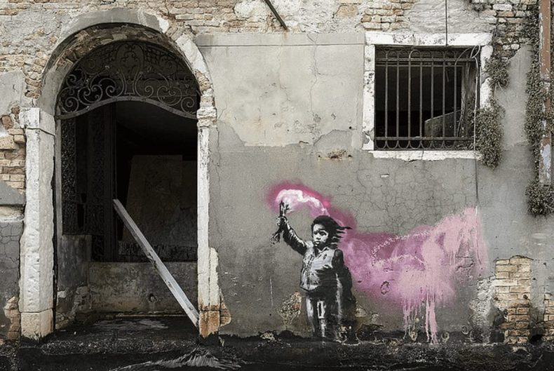 Otra de las obras que podrá verse es la de ‘Love is in the air’, también conocida como ‘El lanzador de flores’. Son muchos los marchantes y casas de subastas que realizan estudios artísticos y uno de ellos, realizado en 2017, puso de manifiesto que más de la mitad de las personas a las que se preguntó reconocía esta obra como un trabajo de Banksy.