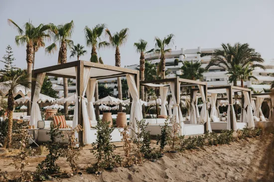 Barbillón Marbella, está ubicado a solo diez minutos de la prestigiosa Milla de Oro en la urbanización Guadalmina Baja, un oasis mediterráneo de 4.000 metros cuadrados con vistas impresionantes al mar. Inaugurado en 2023, Barbillón Marbella marca la primera incursión del Grupo Barbillón fuera de Madrid, brindando a los amantes del buen vivir y de los placeres mundanos, un espacio único y hedonista en la Costa del Sol. El espacio cuenta con un diseño de estilo mediterráneo, destacando su cálida ambientación y elegantes tonalidades neutras donde disfrutar de tres ambientes exclusivos: bar-restaurante, playa y piscina.