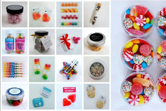 La gran variedad y originalidad de los packagings es lo que más destaca del portfolio que tiene Bcnsweet. Tienen múltiples opciones para encontrar el regalo idóneo para cada ocasión: caramelos personalizados, bolsitas y botes con gominolas, cajitas de cartón con chocolates, tarros de cristal, envases en forma de estrella, tubos de ensayo etc.