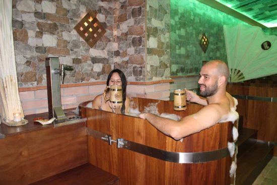 El corazón del circuito lo ocupa el baño en cerveza, preparado con ingredientes como levadura, lúpulo, cebada y malta, con un aroma especial. Esta combinación ayuda a destensar la musculatura, eliminar impurezas y regenerar la piel gracias a su contenido en vitaminas del grupo B. También activa el metabolismo y mejora la textura cutánea.