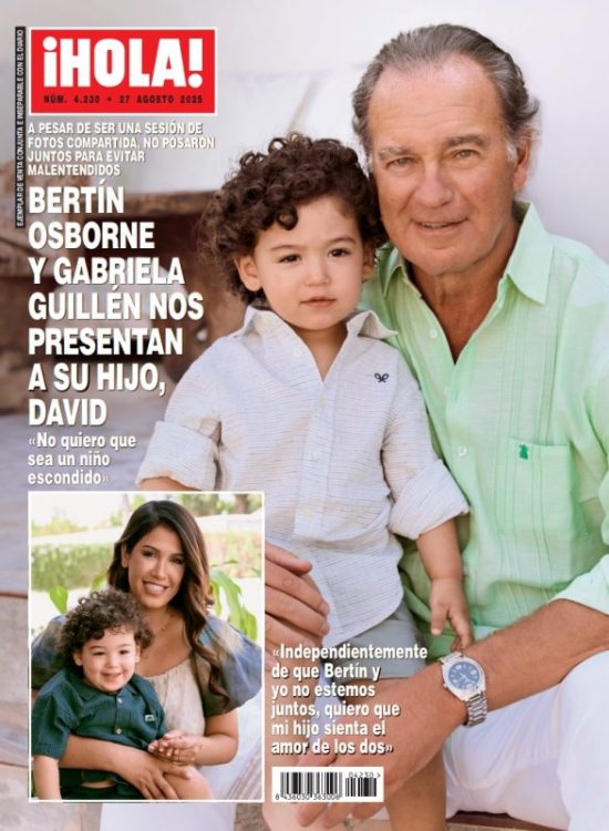 ¡Hola! trae una de las portadas más esperadas y que parecía imposible hace unos meses: Bertín Osborne posa con David, el hijo que tuvo con Gabriela Guillén: “No quiero que sea un niño escondido”, dice en portada el cantante. También aparece la propia Gabriela, en una foto distinta. El niño es de los dos pero no posan juntos. “Quiero que sienta el amor de los dos”, dice la experta en belleza y cuidado estético con su sonriente pequeño en brazos.