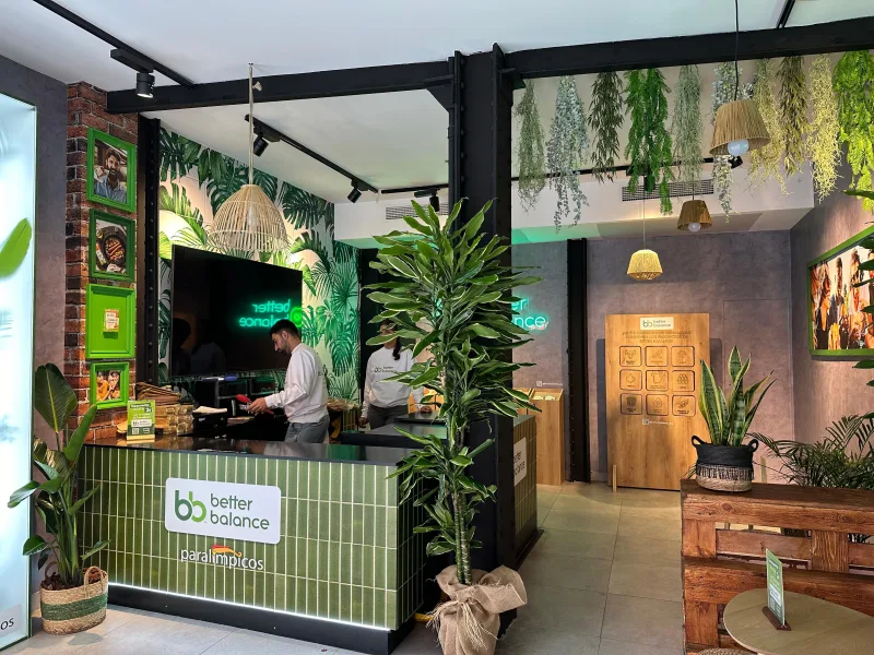 En una tarde de primavera, con temperaturas que rozan los 25 grados, en la emblemática Plaza de Callao de Madrid, el local de Samplia se impregna de los vibrantes colores corporativos de Better Balance. La pop-up de la marca seduce a madrileños y visitantes resaltando el enfoque de ayudar a las personas a encontrar su mejor versión mientras cuidan el planeta.