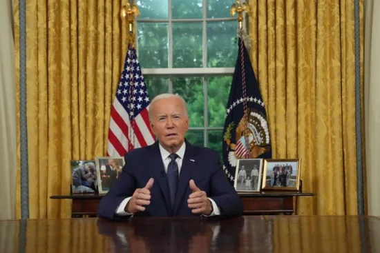 Biden ha justificado su decisión de retirarse de la carrera a la Casa Blanca para un segundo mandato porque «la defensa de la democracia es más importante que ninguna ambición personal», y que cree que es «el momento» de dar paso a «voces» más jóvenes, en referencia a Harris, a quien ha calificado de «experimentada», «fuerte», «capaz» y de «gran compañera» tanto para él como para el país.
