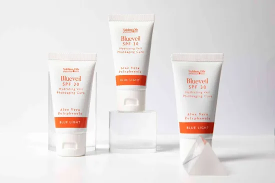 Basándose en esta poderosa fórmula, Sublime Oils ha innovado en el mercado con su protector solar BlueVeil Suncream con mínima cantidad de agua. Esta nueva generación de protectores solares de amplio espectro combina una potente acción antioxidante y propiedades preventivas contra el fotoenvejecimiento. Ofrece una protección solar SPF 30 frente a los rayos UVA y UVB, y proporciona una defensa robusta contra la luz azul emitida por dispositivos electrónicos, una de las principales causas de daño cutáneo en la era digital.