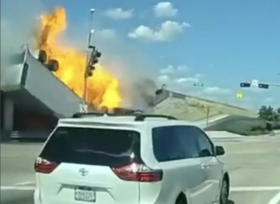 Un impactante accidente de tráfico fue grabado en una autopista de Texas, Estados Unidos, cuando un camión cayó desde un puente, y estalló en llamas en medio de la carretera.
