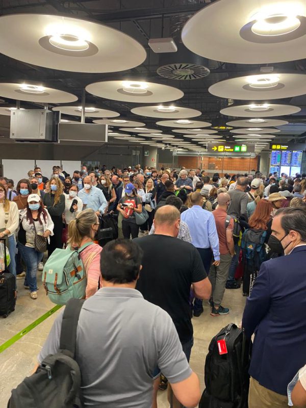 Las imágenes del caos que estos días se ha instalado la mayoría de aeropuertos de nuestro país por la falta de efectivos policiales en los controles de pasaporte, se han repetido la maña de este lunes en la T4 del aeropuerto de Adolfo Suárez Madrid-Barajas.