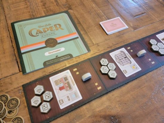 La parte gráfica y la ambientación son fundamentales para la experiencia. El arte de Caper: Europe es magnífico, con ilustraciones estilizadas que capturan perfectamente el espíritu de las historias de atracos de la vieja escuela. Las fichas de los ladrones y el diseño de las cartas de ubicación son visualmente atractivos. Además la calidad de los materiales y el inserto facilitan el montaje y que se puedan usar en innumerables ocasiones.