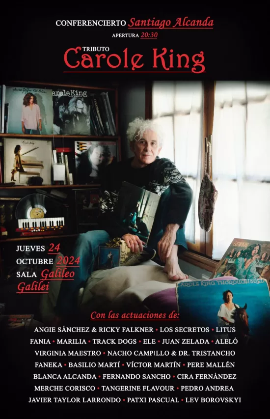 Ya hemos disfrutado de otros muchos Conferenciertos dirigidos y presentados por Santiago Alcanda, de artistas como Fleetwood Mac, Elton John, Eagles etc.. Un Tributo que lleva a cabo con prestigiosos músicos españoles donde dan vida de nuevo a las canciones más significativas, todo ello aderezado con suculentas explicaciones que hace Santiago Alcanda por el recorrido discográfico y biográfico, amenizado con videos y diapositivas. El día 24 de octubre le toca el turno a Carole King.