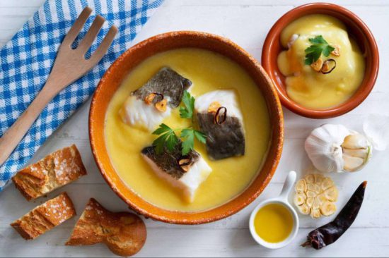 Por su parte, para la preparación del bacalao al pil pil se necesitan tres ingredientes aparte del bacalao: aceite de oliva, ajo y guindillas (opcionales). Este se cocina en una cazuela de barro para darle un sabor inigualable y se puede acompañar con arroz blanco y ensalada y complementarse con un vino.