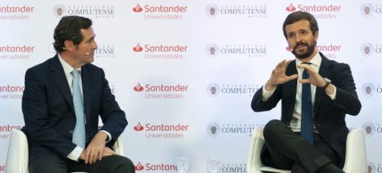 El líder del PP, Pablo Casado, y el presidente de la Confederación Española de Organizaciones Empresariales (CEOE), Antonio Garamendi, coincidirán este jueves en el curso de verano que organiza la Asociación de Trabajadores Autónomos (ATA) en una mesa sobre autónomos y emprendedores.