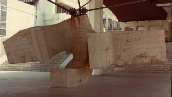 ‘Lugar de encuentros VI’ (1974), por su parte, se emplaza en la Fundación Juan March. Esta obra, contrariamente a las obras de la serie que se presentan suspendidas, se halla férreamente apoyada en el suelo. Sin embargo, los diferentes componentes de la obra entablan un diálogo con el espacio y a pesar de la utilización de un material pesado como el hormigón, algunas partes de la obra parecen flotar en el vacío.