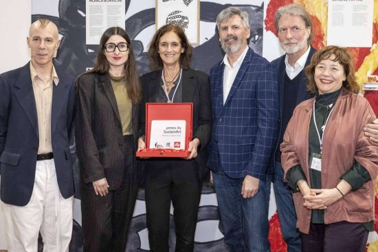 (FOTO) De izquierda a derecha: Mariano Mayer (curador de arte independiente y miembro del jurado) Imma Prieto (Directora de la Fundació Tàpies y miembro del jurado), Gabriela Moragas (de la Galería Angels Barcelona, ha recogido el premio en nombre de Claudia Pagès) Javier Díaz-Guardiola (Crítico de arte de ABC y coordinador de la sección de arte de ABC Cultural y miembro del jurado), Carlo Bach (director artístico de illy) y Maribel López (directora de ARCOmadrid)