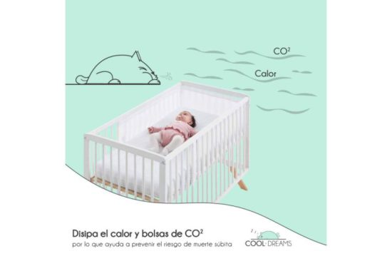 Otra recomendación importante a la hora de prevenir el SMSL es cubrir la cuna con un protector de malla transpirable, el cual evita que se concentre el calor en el interior de la cuna, facilitando la circulación del aire. En este sentido, Cool-Dreams cuenta con la malla transpirable Oxygen, producto compuesto por microsegmentos de tejido técnico 3D, los cuales promueven la evacuación del calor del cuerpo del bebé, mejorando su transpirabilidad para lograr un ambiente seco y fresco.