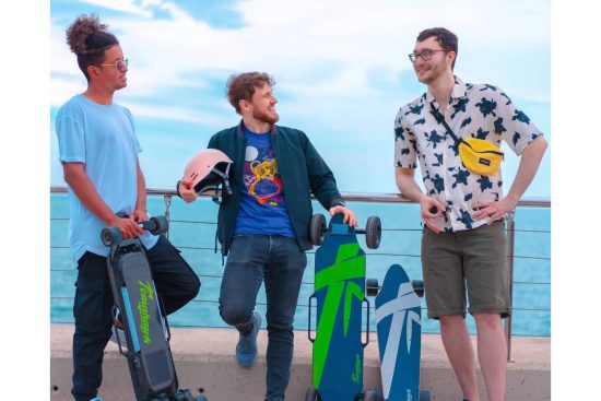 La empresa presenta en el mercado una propuesta que combina novedosos avances del transporte urbano: los monopatines skate eléctricos. Estos incorporan materiales de alta calidad en longboards aptos para todos los niveles de aprendizaje. Las ruedas de los mismos son intercambiables entre ruedas street de 90 mm y ruedas off-road, para poder disfrutarlos en cualquier ocasión. Sumado a ello, cuentan con asas laterales que facilitan el transporte y con ruedas macizas. Su motor doble alcanza una velocidad de hasta 30 km/h, permitiendo subir pendientes de 20 grados, e incorpora una batería con capacidad de hasta 25 km de autonomía, tras una carga única de tres horas.