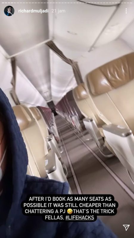 Richard Muljadi, toda una celebridad en Jakarta, donde es conocido por sus excentricidades, compartió en su cuenta de Instagram una serie de fotografías donde se podía apreciar como él y su mujer viajaban en un avión comercial completamente vacío durante un trayecto que cubría la ruta entre Jakarta y Bali.