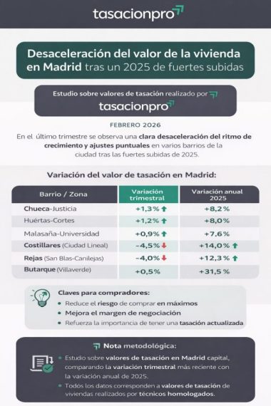 Las tasaciones detectan una desaceleración del valor de la vivienda en Madrid tras un 2025 al alza