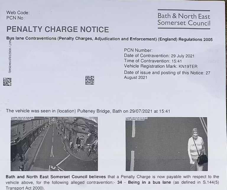 La sanción en cuestión era por haber superado la velocidad permitida en un carril-bus de la ciudad de Bath, a más de 200 kilómetros de su casa.