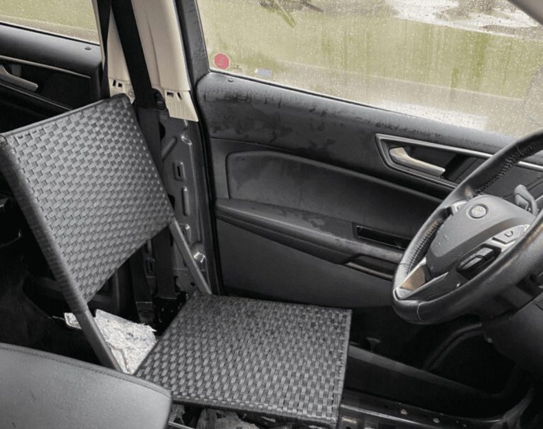 La policía de Ontario, Canadá, compartió en su cuenta de Twitter las imágenes de un vehículo que requisaron cuando los agentes se percataron que el dueño había instalado una una silla de jardín plegable en el asiento del conductor.