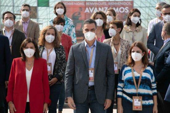 Posteriormente, tanto los ministros como los barones socialistas se hicieron una foto a la entrada de la Feria y, tras la instantánea, el presidente del Gobierno saludó a algunos simpatizantes.