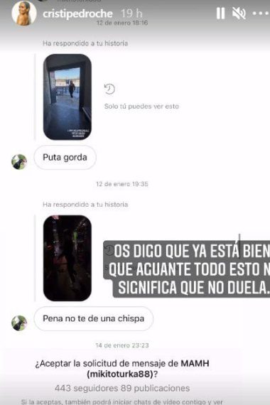 Los continuos comentarios negativos han llevado a la presentadora a amenazar con bloquear la posibilidad de que sus seguidores respondan en sus historias en Instagram. La morena compartió el jueves los mensajes que recibía de una mujer que no paraba de criticarla por su físico.