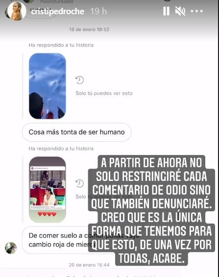 “Os digo que ya está bien. Que aguante todo esto no significa que no duela”, protesto la de Vallecas. «A partir de ahora no solo restringiré cada comentario de odio sino que también denunciaré. Creo que es la única forma que tenemos para que esto, de una vez por todas, acabe», advirtió.