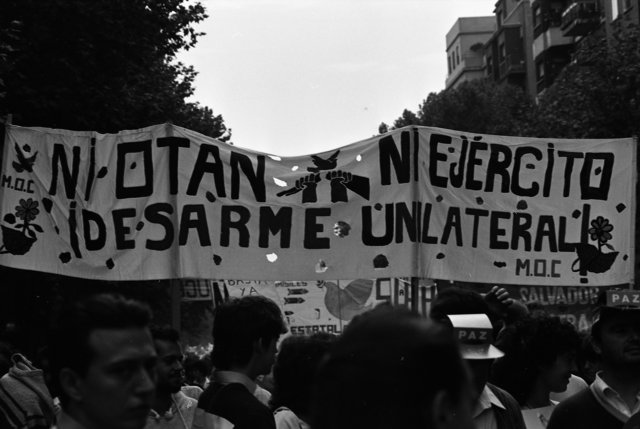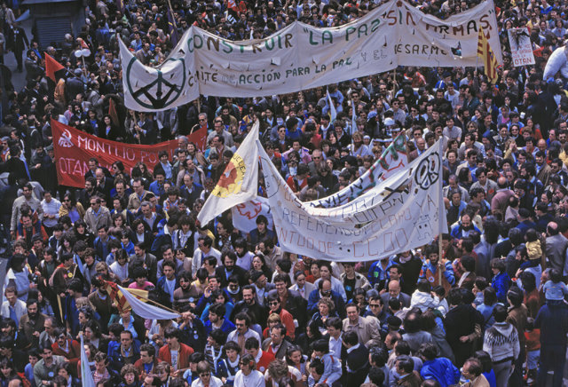 Al otro lado del ‘Telón de Acero’, la Unión Soviética pudo participar de la propaganda que permeaba los movimientos antibelicistas en toda Europa y que llevaron a históricas manifestaciones en España, aunque «no puede saberse hasta qué punto incidió», dice Quaggio.
