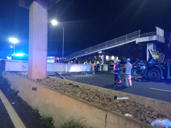 El accidente ha tenido lugar a última hora de este jueves en la pasarela situada junto a Ikea, después de que un camión grúa que trabaja en las labores de mejora de la Ma-20 golpeara la infraestructura.