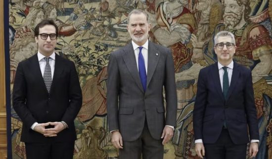 El vicepresidente primero del Gobierno y ministro de Economía, Comercio y Empresa, Carlos Cuerpo, y el nuevo titular de Hacienda, Arcadi España, han prometido sus cargos ante el rey Felipe VI en el Palacio de la Zarzuela.