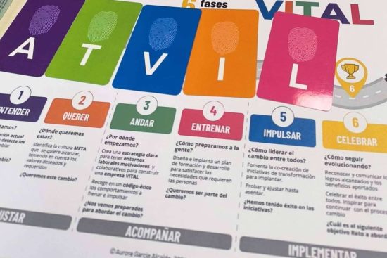 Aurora García Alcalde, especialista en desarrollo organizacional, ha desarrollado el método VITAL con herramientas de gamificación como La Diana de los Valores, para facilitar la implantación y vivencia de los valores corporativos de forma ágil, dinámica y adaptada a las necesidades actuales de las empresas. A través de estrategias innovadoras, estas metodologías permiten que los principios fundamentales de la organización se conviertan en elementos activos dentro de la cultura empresarial, impulsando la motivación y el compromiso de los equipos.