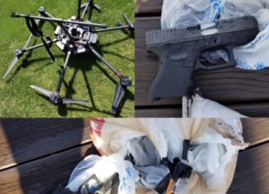 Encuentran un dron cargado con armas de contrabando atascado en la rama de un árbol