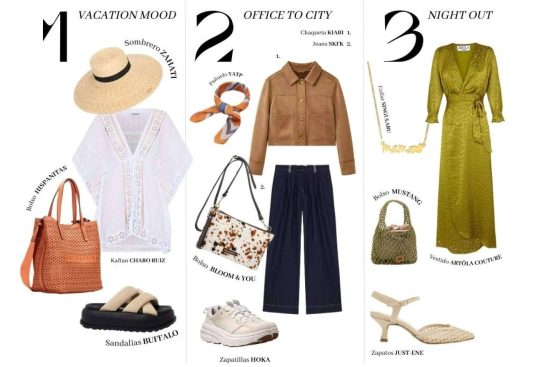 Si su escenario soñado es desconectar frente al mar, el uniforme más ‘cool’ empieza con un kaftán calado de Charo Ruiz, ligero y versátil junto a unas sandalias acolchadas de Buffalo, que aseguran confort incluso tras largos paseos. En cuanto a bolso, Hispanitas propone uno maxi en tejido troquelado, capaz de guardar toalla, libro y crema solar. Ah, y no hay que olvidarse del sombrero: la marca Zahati tiene los modelos más originales para protegerse del sol sin perder estilo. Con estas piezas, la escapada —aunque sea de fin de semana— se convierte en una experiencia cinco estrellas.