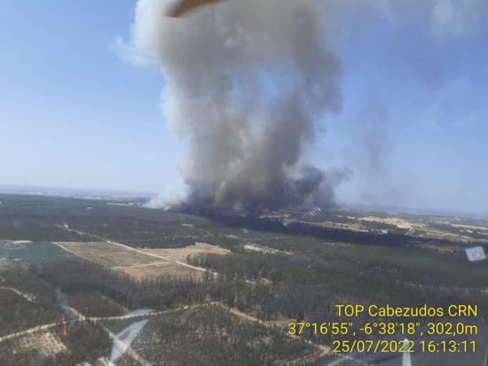 El incendio forestal declarado este lunes en el término municipal de Bonares, en la provincia de Huelva, ha obligado a desalojar de manera preventiva más de 220 vivienda de la localidad de Almonte, tal y como ha informado este martes de madrugada Emergencias 112 Andalucía.