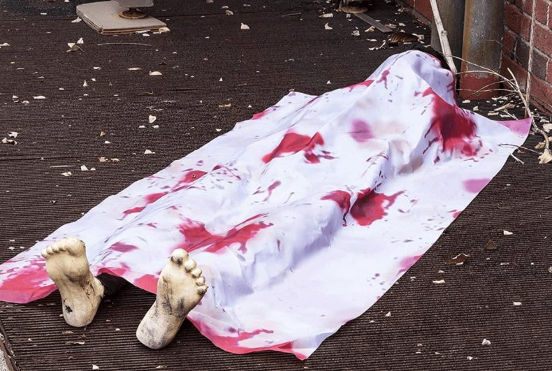 Un vecino de Maryland (EEUU) descubrió el cuerpo sin vida de una persona cuando se detuvo a contemplar la supuesta decoración de Halloween que se exhibía en la puerta de un local.