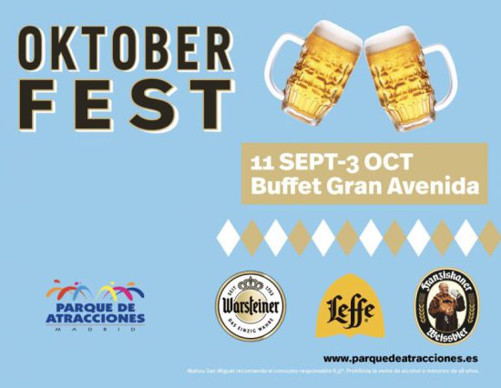 Oktober Fest se celebra desde el sábado 11 de septiembre hasta el domingo 3 de octubre en el Buffet Gran Avenida del Parque de Atracciones de Madrid. Desde las 13 horas todos los visitantes del Parque de Atracciones de Madrid podrán adentrarse en un espacio caracterizado por los aromas de las mejores cervezas, una selección de deliciosas salchichas con diferentes elaboraciones, hamburguesas alemanas, codillo o los mejores complementos a los platos 100% de origen alemán como el choucroute al vino, la ensalada de arenques y remolacha o el lazo Laugenbrezel. En Oktobert Fest se podrá disfrutar de una experiencia cervecera muy similar a la original, gracias a Warsteiner, Leffe y Franziskaner, las tres marcas que Mahou San Miguel distribuye y comercializa en nuestro país.