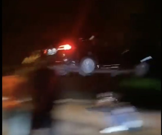 En las imágenes se puede apreciar como el vehículo vuela a una altura considerable del asfalto después de subir una pendiente a toda velocidad.