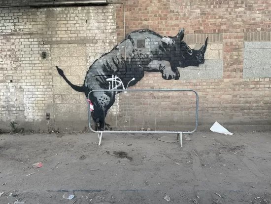 El octavo mural del artista urbano Banksy, ubicado en la calle Westmoor en Charlton y que se corresponde con la figura de un rinoceronte en una pared que simula escalar un coche aparcado justo delante, ha sido vandalizado por otro grafitero, según ha informado el diario británico ‘The Guardian’.