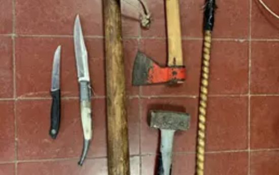 En ese momento el presunto autor huyó a la calle saltando por la ventana. Los agentes encontraron varias armas blancas, así como diferentes objetos contundentes que utilizaba para agredir a la víctima. Posteriormente fue detenido en una calle aledaña escondido debajo de un coche.