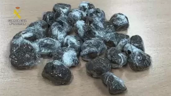 En los tres paquetes que llevaba se contaron un total de 24 piedras de hachís, con un peso de 43,48 gramos, empaquetadas y perfectamente preparadas para su posterior distribución.