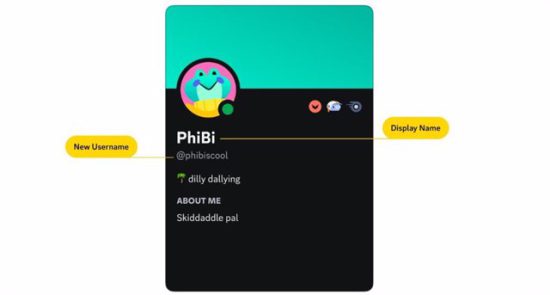 Junto al nuevo nombre de usuario, Discord ha comunicado que también habrá un nombre para mostrar, que será con el que la persona aparecerá principalmente en la plataforma y como aparecerán en los mensajes directos cuando no tenga un apodo de servidor o amigo. Los apodos son otro de los nombres que podrán mostrar los usuarios, aunque estos son opcionales.