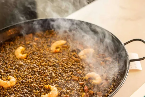 Esto se complementa con las múltiples delicias de su carta, la cual recoge algunos de los más exquisitos sabores de la gastronomía mediterránea. Este repertorio contiene una gran variedad de arroces, desde la paella valenciana hasta el arroz del senyoret, acompañado de sepia y gamba. Asimismo, ofrece una extensa selección de platos principales, como pulpo braseado, calamar a la plancha, tellinas a la brasa y muchos otros ejemplos.