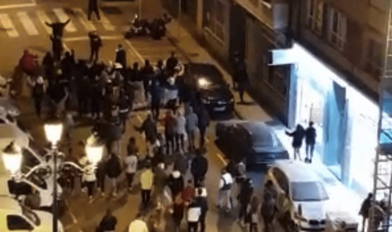 En la capital cántabra generaron varios disturbios levantando adoquines, causando daños al mobiliario urbano y quemando contenedores y cruzándolos en el centro de la calzada, donde no había circulación de vehículos -más allá de los policiales- debido al toque de queda.