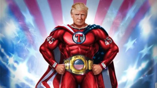 Estas tarjetas muestran una ilustración de Trump como vaquero, astronauta, superhéroe y más.