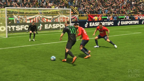 Lo que sí que hemos notado claramente es el hándicap en los jugadores. Ya puedes entrenar para poder defender bien, ya que en nuestrso partidos de EA SPORTS FC 24, normalmente en un duelo, el delantero salía ganador. Tampoco penaliza el hacer filigranas o usar a jugadores muy veloces en ataque. Sin embargo en defensa los centrales quizás, si son lentos, queden retratados en las jugadas con el balón en carrera.