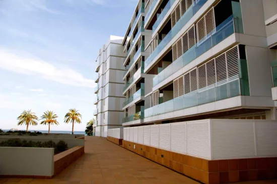 Los apartamentos cuentan con dos y tres habitaciones, dos baños, cocina office con lavadero y una terraza con vistas panorámicas al mar