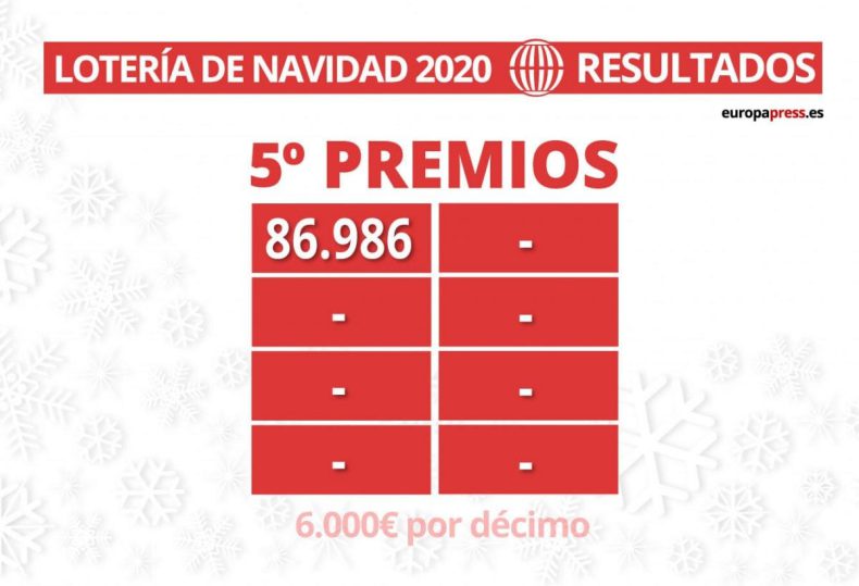 El número 86.986 ha resultado agraciado con uno de los ocho quintos premios del Sorteo Extraordinario de Lotería de Navidad, dotado con 60.000 euros a la serie, que ha resultado muy repartido por toda la geografía española, en casi 40 provincias.