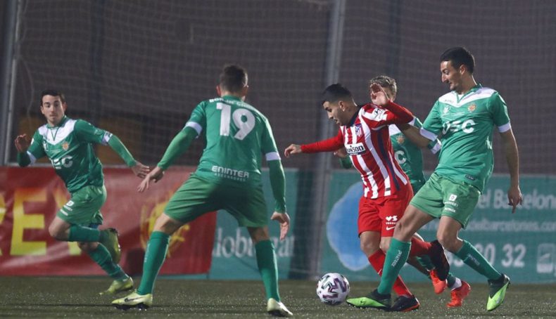 El Atlético buscó la reacción y Vitolo la tuvo. Los de Simeone lograron algo de posesión para calmar la presión arriba de los locales y sobre el minuto 20 tuvieron la opción de gol más clara, una triple ocasión de Correa, Saúl al larguero y de nuevo el argentino. Se salvó de milagro el Cornellá, pero no renunció al ataque y Estellés obligó al paradón de San Román.